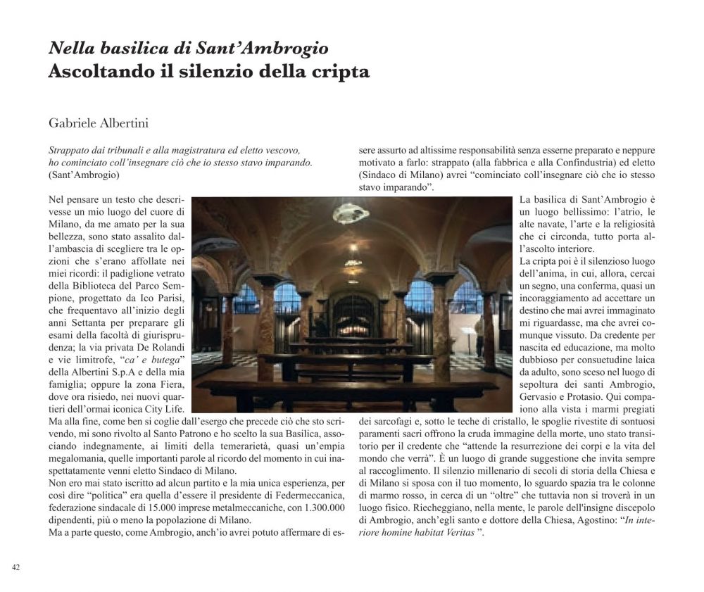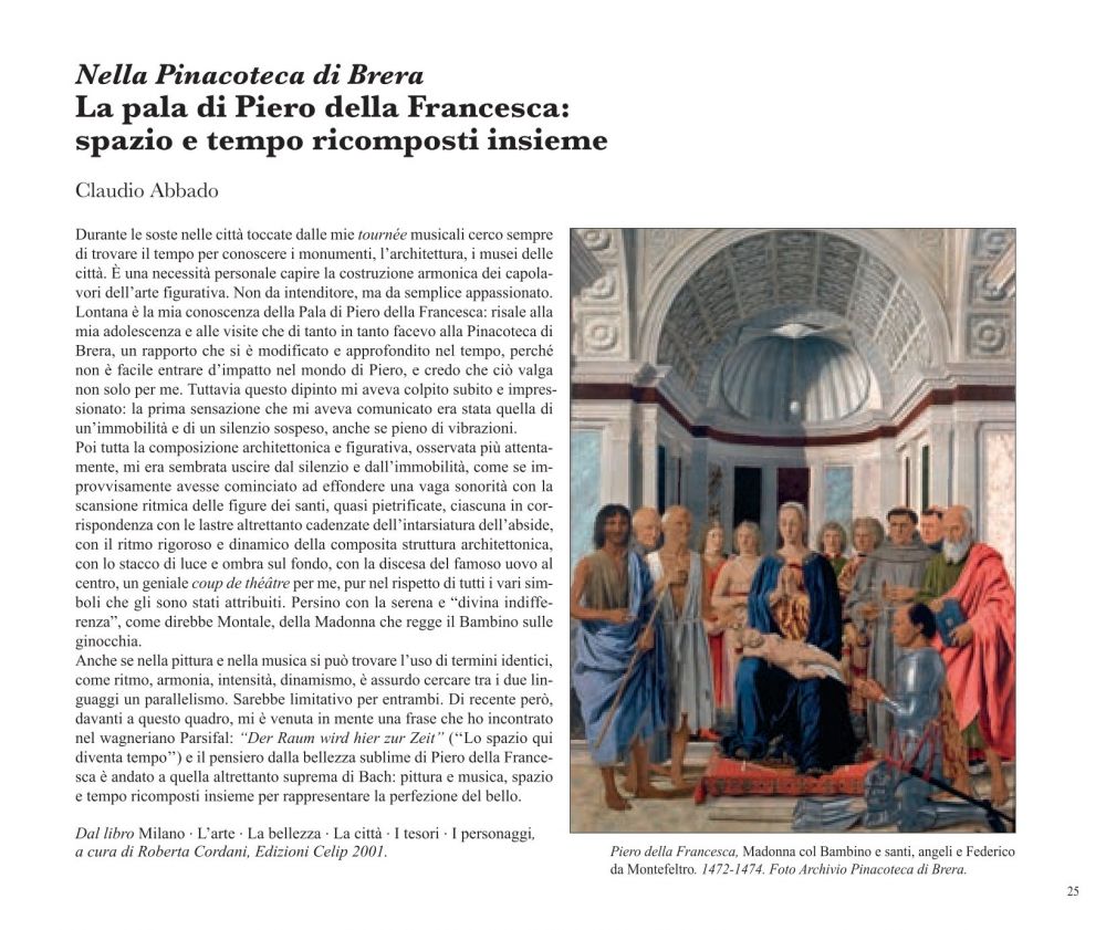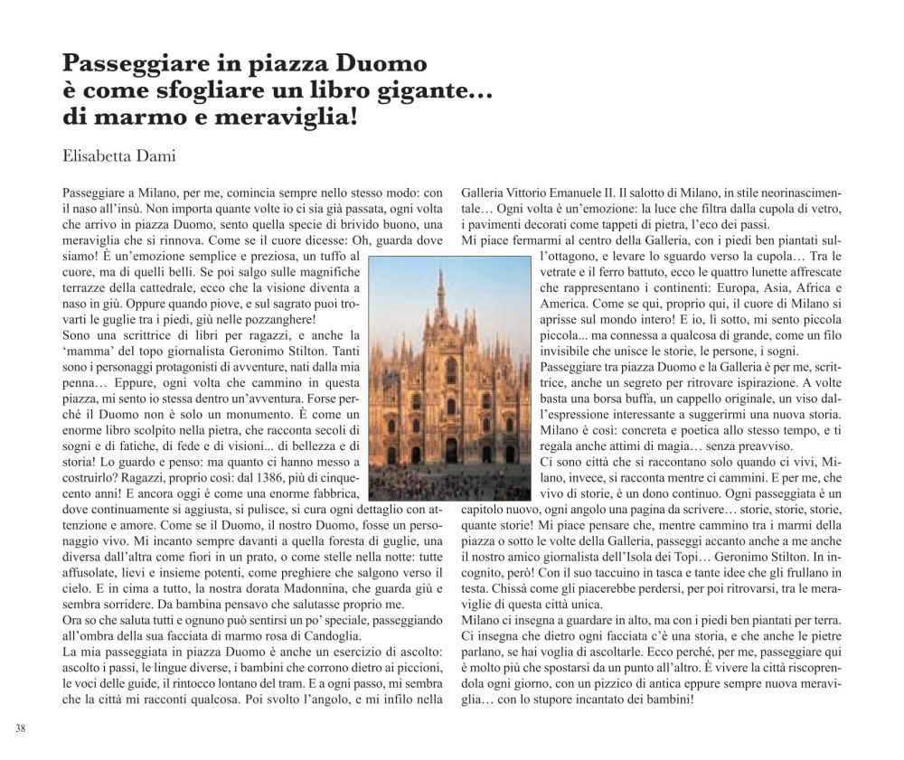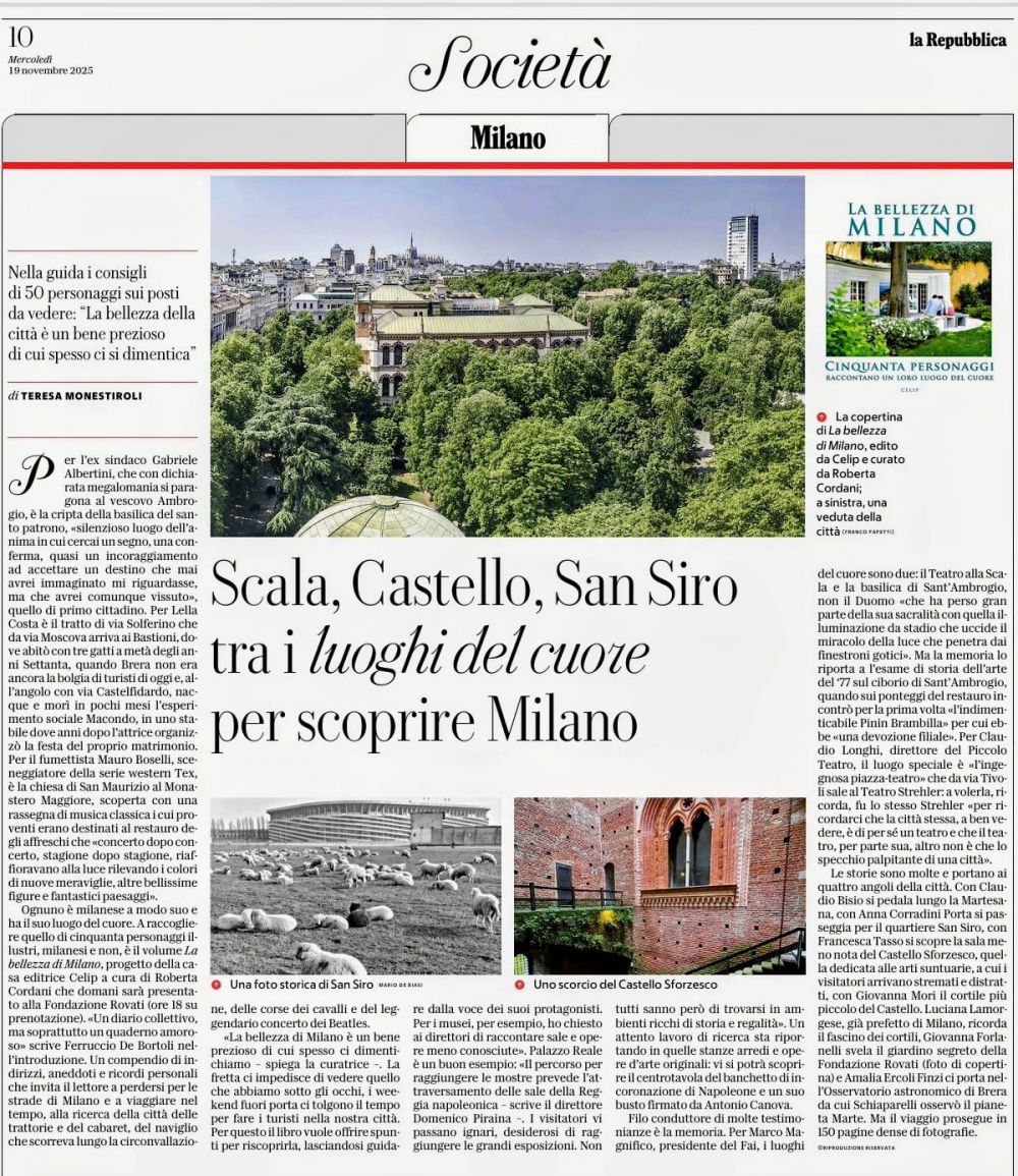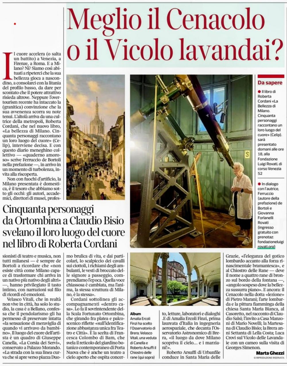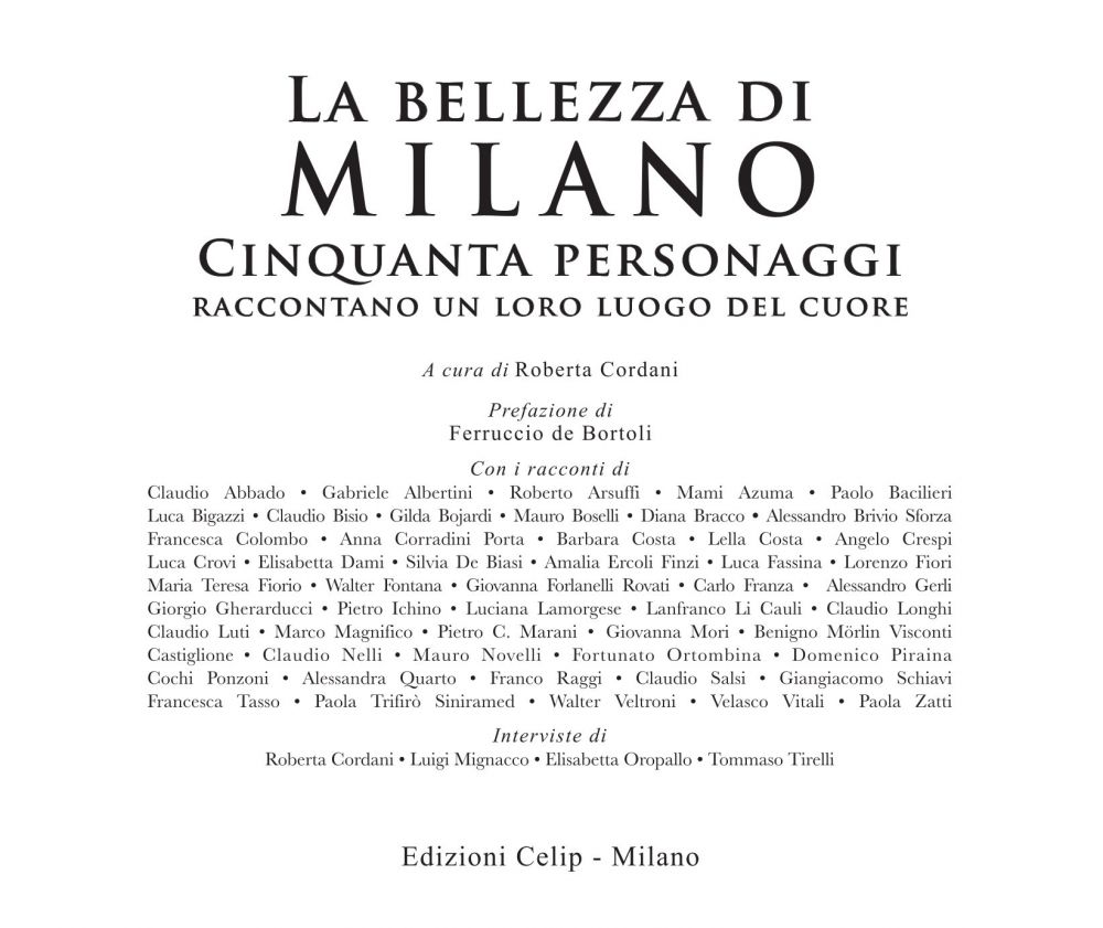 A cura di Roberta Cordani. Prefazione di Ferruccio de Bortoli, autori vari. Un libro che racconta Milano in modo speciale e diverso, grazie alla voce di cinquanta personaggi, partendo dai loro luoghi del cuore. Attraverso ricordi, emozioni, descrizioni, passeggiate curiose e suggestive fotografie si compone un viaggio nell’arte, nella storia e nella memoria, guidati da studiosi, scrittori, giornalisti, direttori di musei e di istituzioni cittadine, scienziati, imprenditori, artisti e protagonisti dello spettacolo. Un affascinante itinerario nella bellezza della città conosciuta o da scoprire. Di oggi e di ieri. Così la voce degli autori più vari mostra le anime di una Milano che ha saputo e sa coinvolgere. Per entrare nel cuore della città. Perché proprio l’emozione della bellezza suscita in noi sempre qualcosa di diverso, che però "unifica" un po’ tutti.